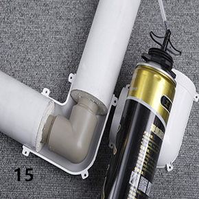 (四)先包上半邊外包配件,再打發泡填充劑,然后再蓋上另一半配件,最后擰上螺絲部分。
